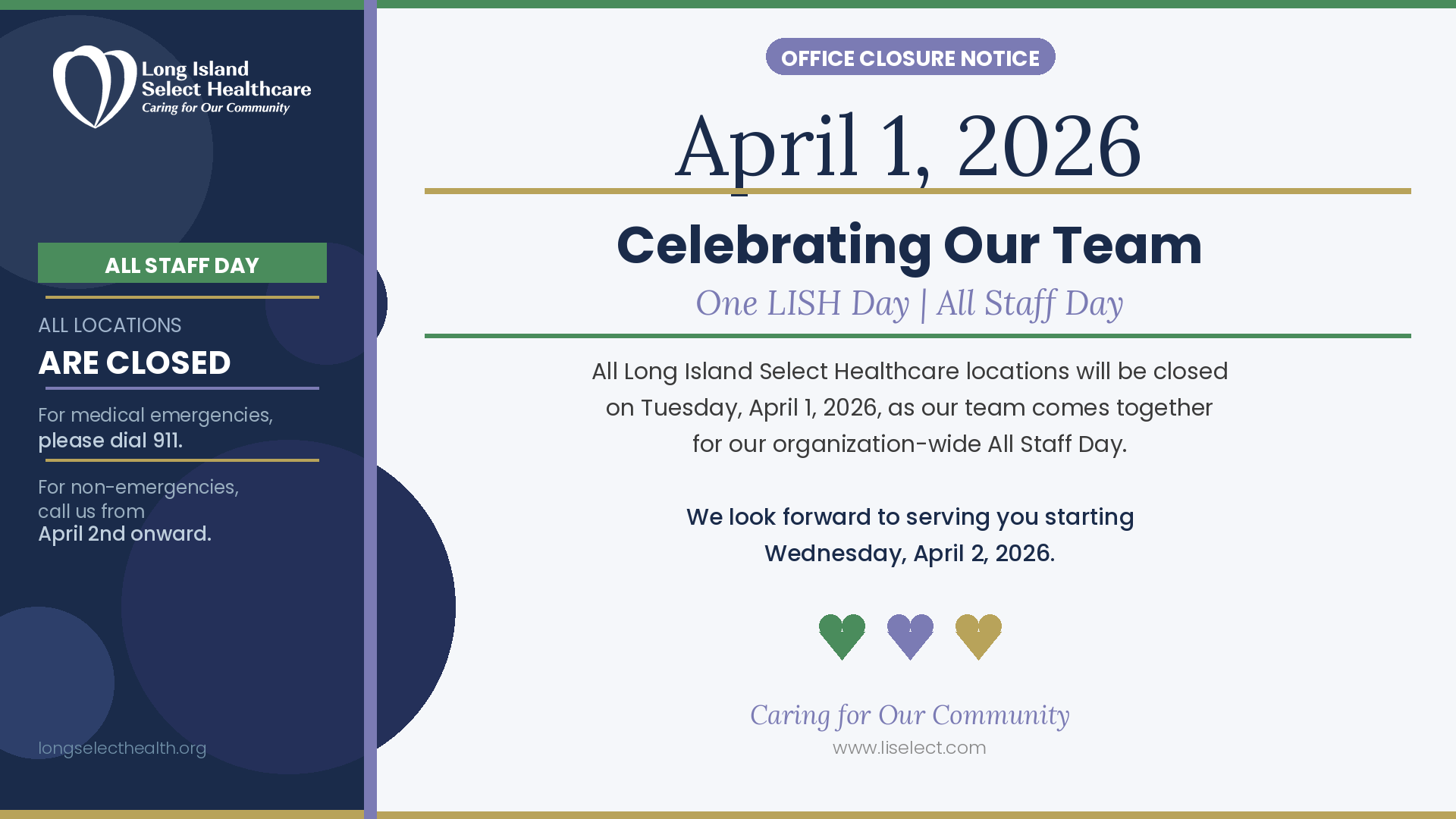 Limited hours and services. Please call 631-650-2510 for details.